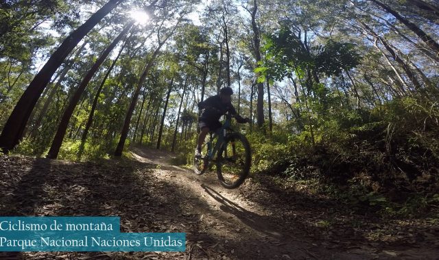 Practicando ciclismo de montaña en el parque Naciones Unidas