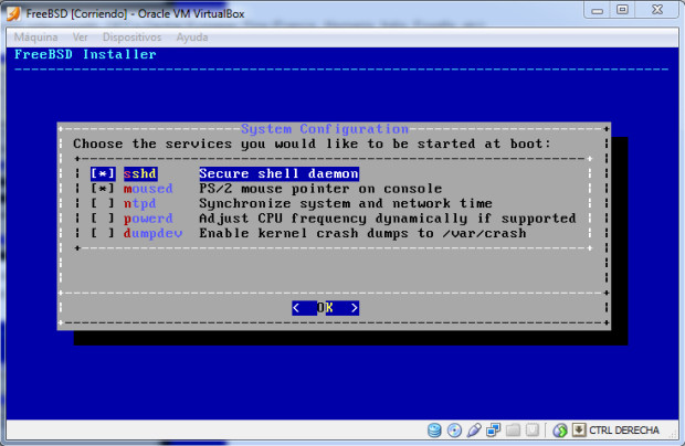 18. El siguiente parámetro son los servicios que iniciaran en el sistema, dejaremos por defecto sshd y agregamos moused para gestionar el ratón.