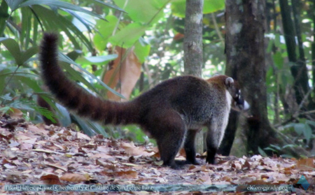 Hace bastante tiempo, días después del 13 baktún yo había visitado por primera vez aquel sitio arqueológico, pero todos los animales se habían alejado. Esta vez, fue todo lo contrario, debido a que se observaron distintos tipos de animales, y una tarántula – caminaba con calma, pero aterraba!